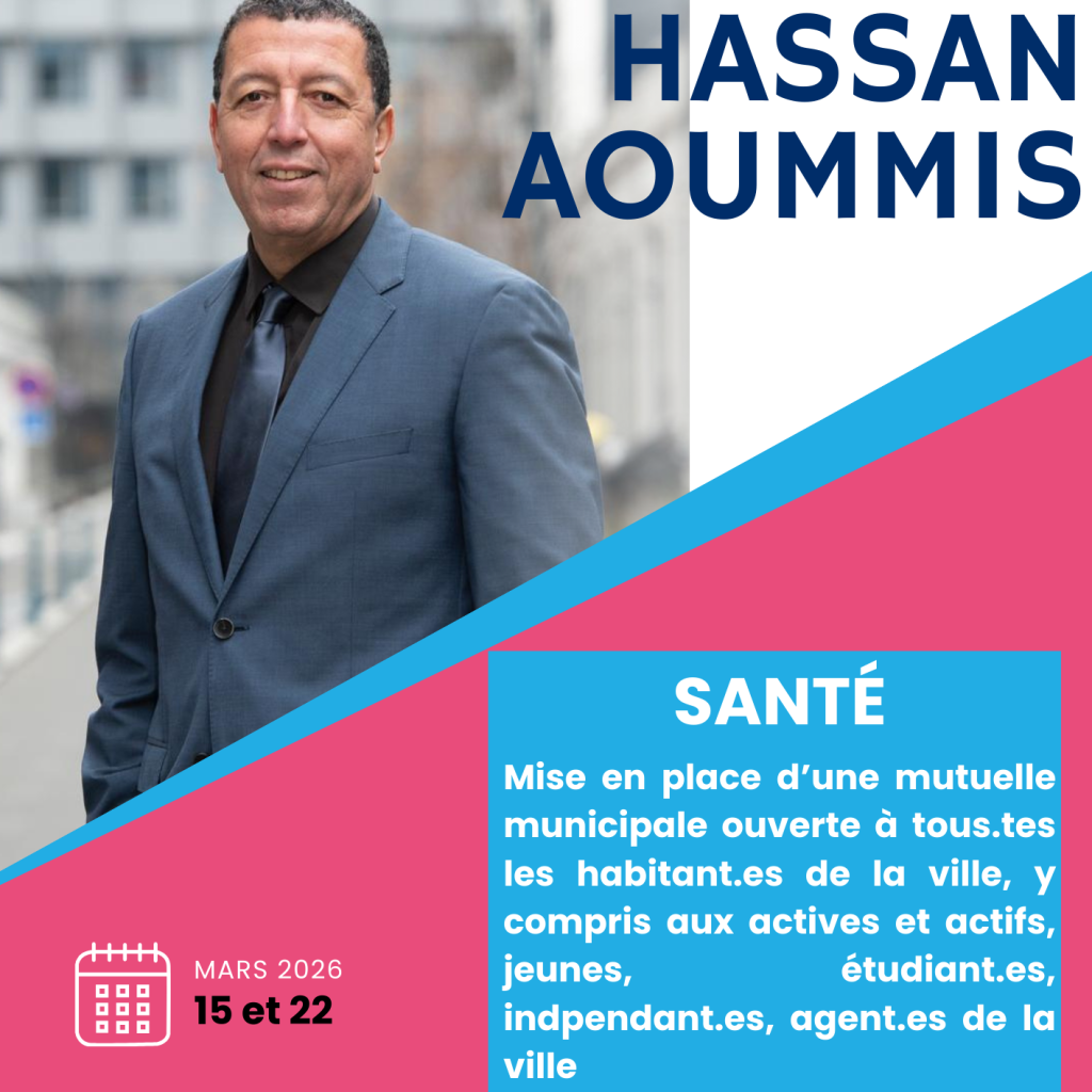 - Mettre en place une mutuelle municipale ouverte à toutes et à tous qui vise à répondre à une urgence sociale. Trop de nos concitoyens renoncent encore à se soigner, ou retardent les soins essentiels, faute d’une couverture santé suffisante. Cette situation est inacceptable. Nous travaillerons pour garantir à chacune et chacun un accès réel et universel à la santé, sans barrière financière. La mutuelle municipale sera accessible à tous.tes les habitants de la ville, y compris aux actives et actifs, jeunes, étudiants, indépendants, agents de la ville, avec un panel d’avantages :